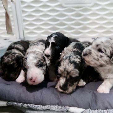 These gorgeous babies are F1b standard Bernedoodles with an expected adult weight between 45-65 pounds. They will have wavy to curly coats.